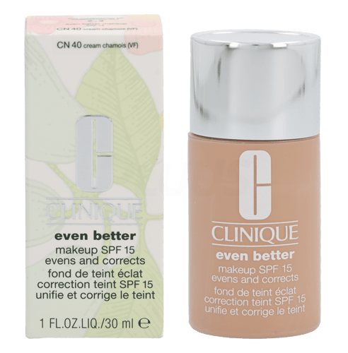 Saat virheettömän meikkipohjan silkkisen pehmeällä Clinique Even Better Make-Up SPF15 30ml 04 Cream Chamois - Cn40 Fondation -voiteella. Kevyt koostumus levittyy luonnollisesti ja antaa kauniin, puolimattaisen lopputuloksen. Tämä meikkivoide on helppo levittää, ja se kestää koko päivän, jolloin iho on näkyvästi kirkkaampi ja säteilevämpi. Se ei ainoastaan palauta epätasaista ihoa ja epätasaista ihon sävyä. Tärkeintä on, että SPF suojaa ihoa auringon haitallisilta säteiltä - joten hanki SPF:n sisältävä meikkivoide
