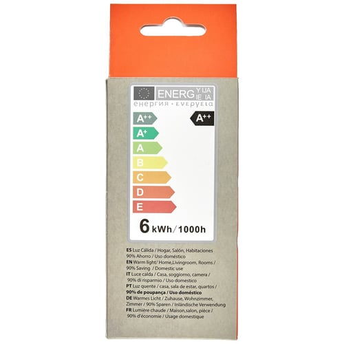 Jos haluat pitää kotisi viimeisen päälle kunnossa ja hankkia viimeisimmät elämääsi helpottavat tuotteemme, osta Pyöreä LED-polttimo Silver Electronics 1980627 E27 6W 3000K A++ (Lämmin valo) parhaaseen hintaan.Tyyppi: Lämmin valoTeknologia: LEDTeho: 80 WKansi: E27Lämpötila: 3000KValonläpäisy: 700 lmHalkaisija noin: Ø 6 cmKantama noin: 15000 hEnergiankulutus: 6 WEnergialuokka: A++